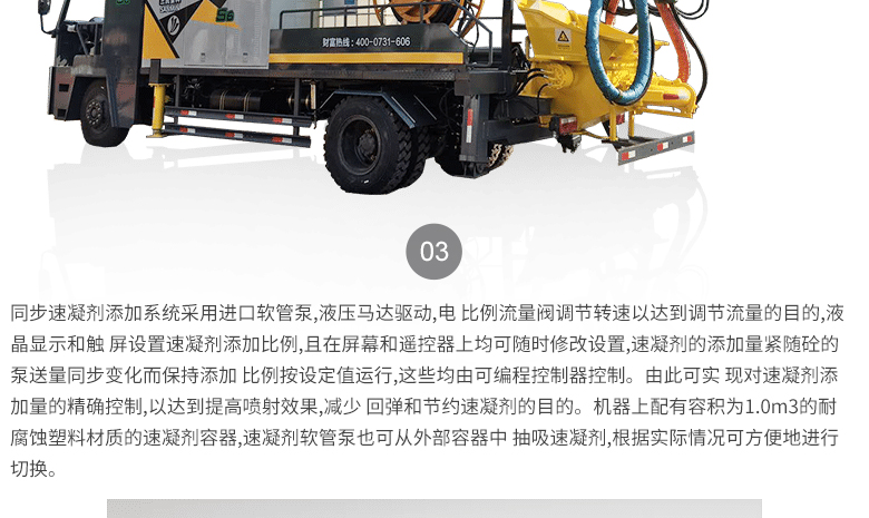 简 介:混凝土湿喷台车是按标准湿喷机产品的要求设计、制造和配置的,属高端的湿喷机产品,其功能多样化,适应范围广。喷射能力大、作业效率高、喷射效果好、操控灵活方便、自行能力强。更加适合较大断面和需要较大喷射砼量以及须要高效率喷射砼的隧道。